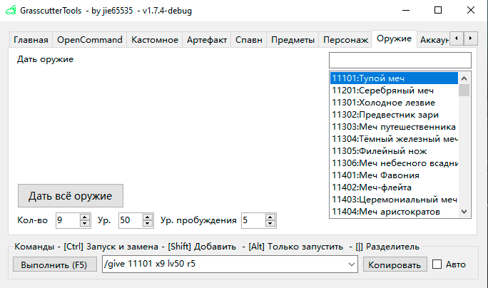 GrasscutterCommandGenerator/Doc/Screenshots-ru/8-Weapons.png